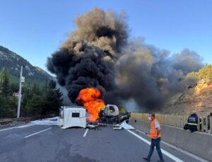 Adana-Pozantı otoyolunda tır yandı: Ulaşım trafiğe kapandı